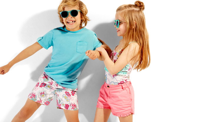 Vacaciones, playas idílicas y momentos relajados, listos… ¡para escuchar el sonido del mar! La colección VACAY para los más pequeños está diseñada en una gama de azules, naranjas y amarillos que combinan con los tonos blancos y grises. Los petos serán los protagonistas, con los prints de divertidos cactus que caracterizan la colección. ¡Al agua patos! Bañadores coloridos con prints de peces y motivos marinos en colores vivos que se convertirán en los esenciales para meter en la maleta estas vacaciones.
